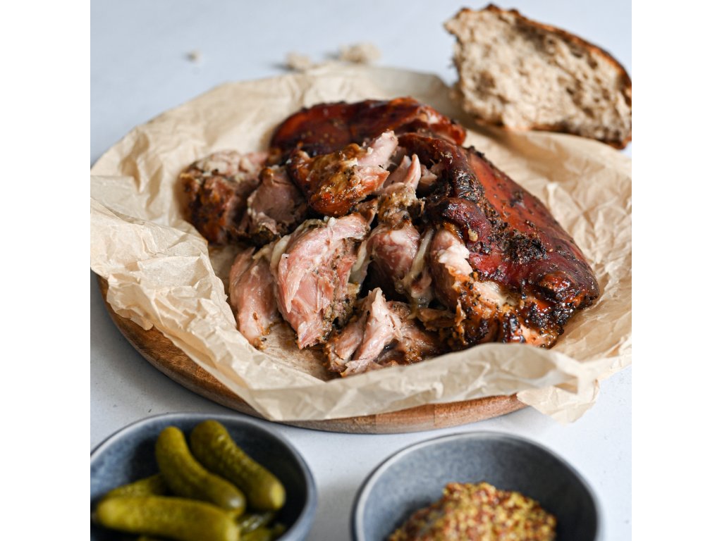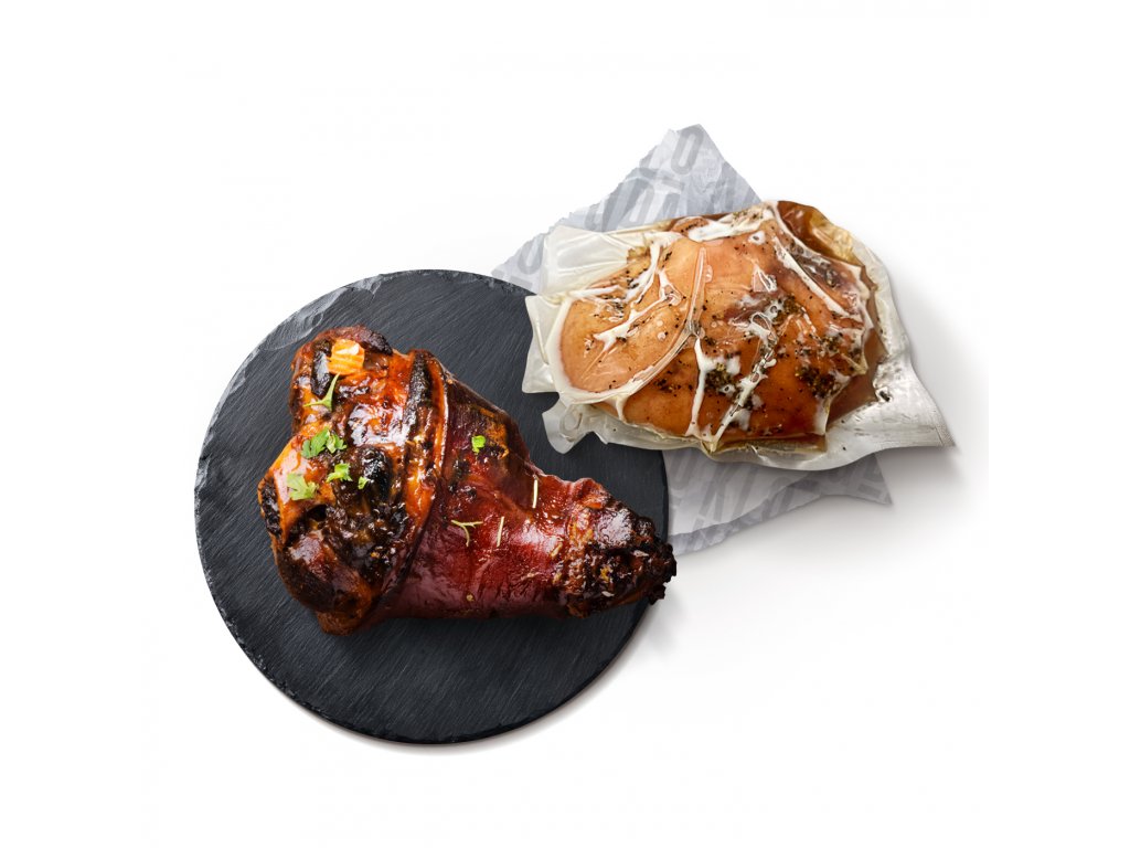 Složení výrobku: Vepřové koleno s kostí 86 % hm.; pitná voda; jedlá sůl; koření; stabilizátor: trifosforečnany; cukr; antioxidant: askorban sodný.