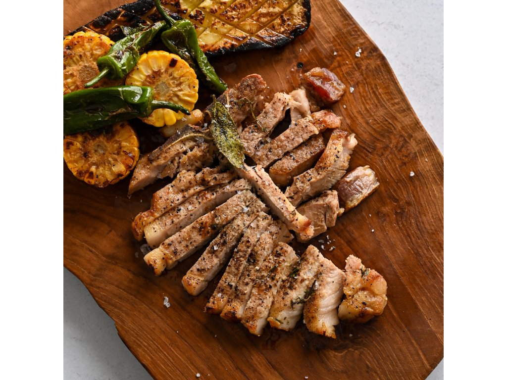 Vepřový T-bone steak neboli kotleta s kostí a panenkou. Pokud máte chu´t na křehký, ale šťavnatý steak, pak nemůžete vybrat lépe.